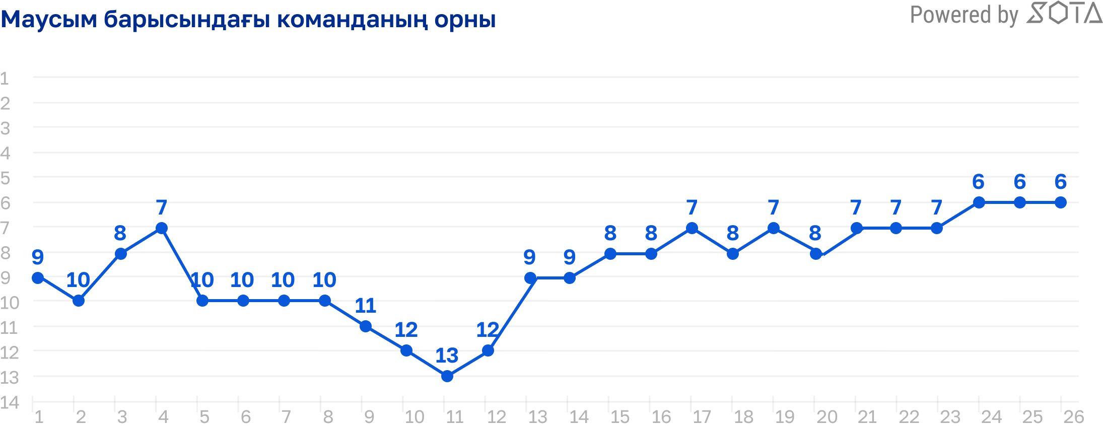 Голсыз басталған маусымнан турнир кестесінің жоғарғы бөлігіне дейін